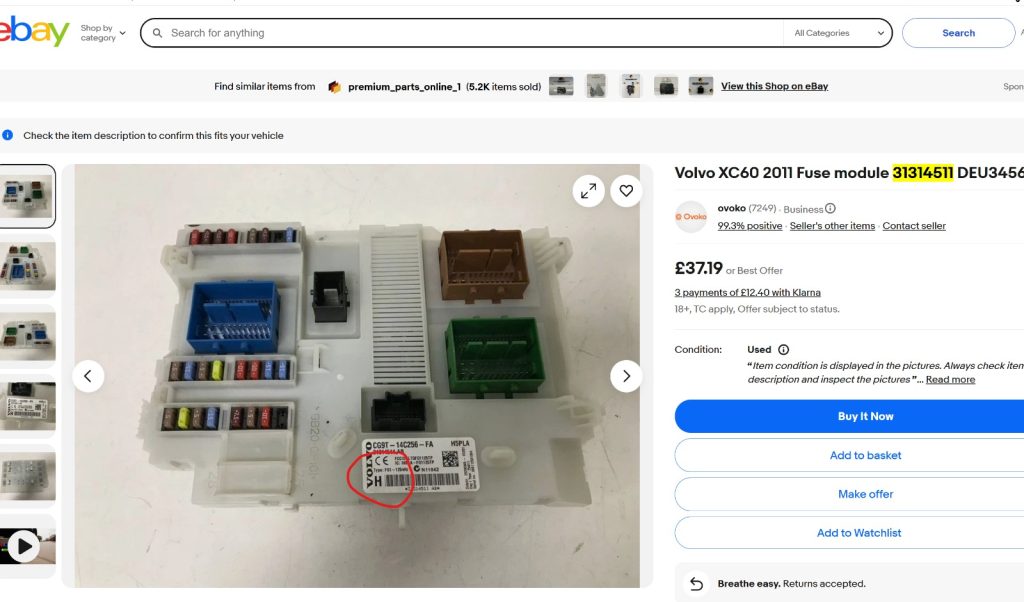 You can look up your CEM part number in the network overview in Vida or in Vdash then look it up on Ebay. Parts catalogue in Vida2014d is usually wrong, dont use it.