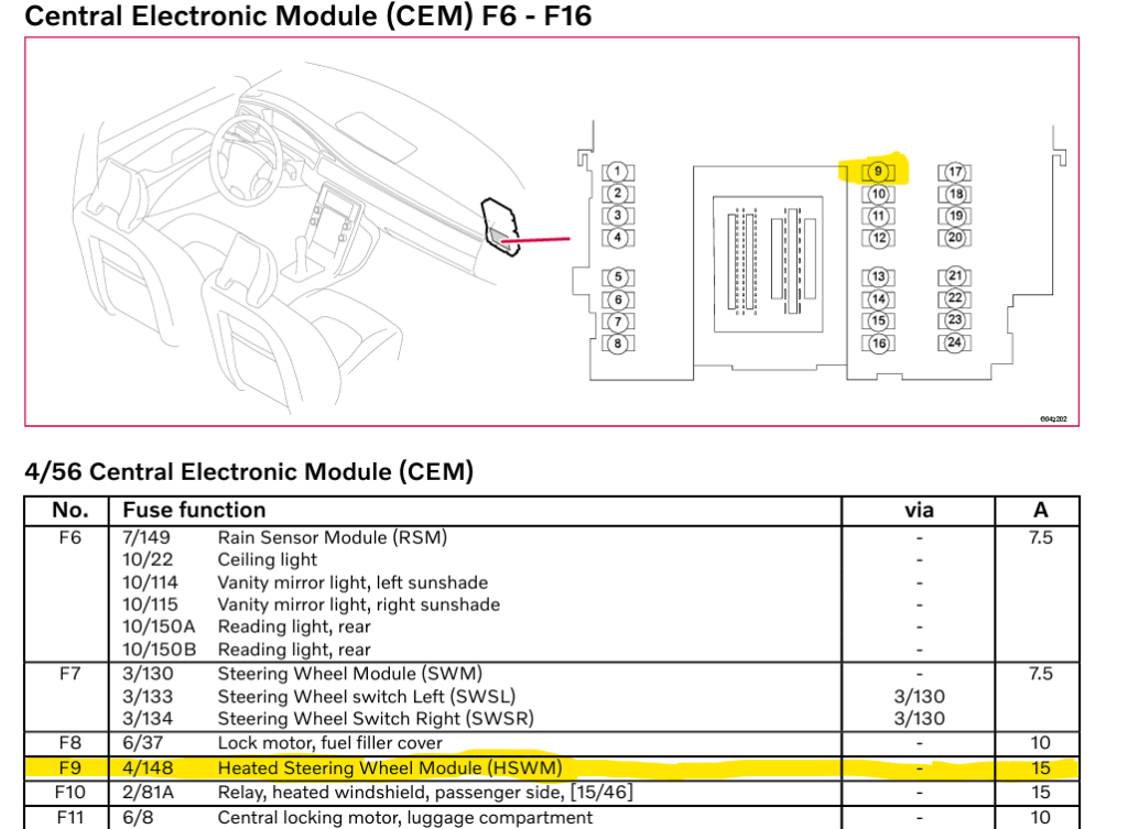 It is important to check that the Heated Steering Wheel Module (HSWM) connector is present in your car if it is between 2012 and 2014, as not all of these had the “High spec” CEM-H with HSWM output. You can find the connector tucked up at the end of the dashboard, or you can check what type of CEM you have.